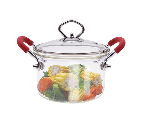 Glass pot for stove top is made of food grade borosilicate glass, lead-free and non-toxic. Clear glass cookware makes cooking crystal clear. Glass pots and pans are easy to clean, and a light wipe removes oil stains. It doesn’t retain odors like metal and plastic cookware.