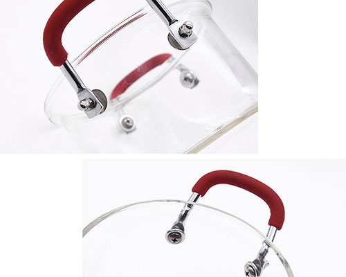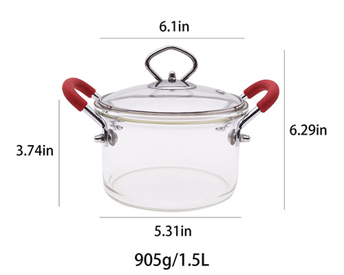 This glass soup pot has a capacity of 1.5L. Glass pots with handles are great for cooking soups, noodles, and more. The lid is wrapped with metal material to prevent the lid from breaking. The handle of the glass pot lid is also made of metal.