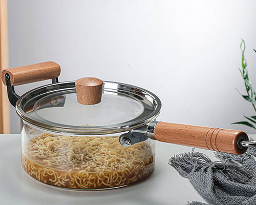 Glass pots and pans with wooden handle are perfect for baby food, milk, sauces and especially for making instant noodles. Clear glass makes cooking clear. Glass cooking pot with lid equips with wooden handle, polished and finely polished, comfortable grip, effective anti-scalding, easy to use. Glass cookware sets won’t stain or retain odors like metal and plastic cookware.
