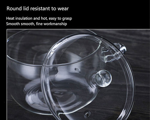 The glass pot with lid is made of smooth and transparent glass material, which can be easily cleaned in the dishwasher. The double handles are easy to use, and the integrated handle structure is safe to prevent hot hands.