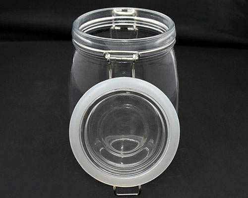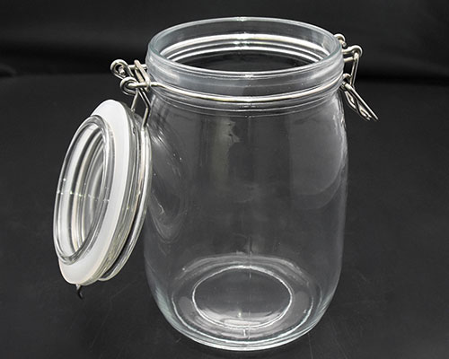 The glass-sealed storage jar comprises a tank body and a tank cover, a circumferential groove is arranged on the joint surface of the cover and the bottle body, and a sealing ring is arranged on the circumferential groove.