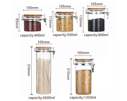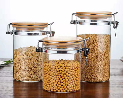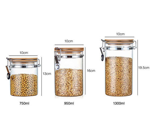 The glass storage jars with clamp lids are made of high quality borosilicate glass. We have clear glass jars in a variety of capacities, glass storage jars with bamboo lids are perfect for storing coffee beans, pasta, grains, beans, rice, nuts and more.
