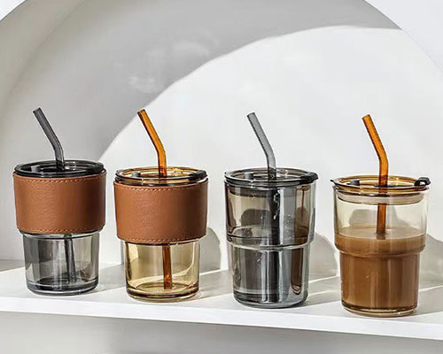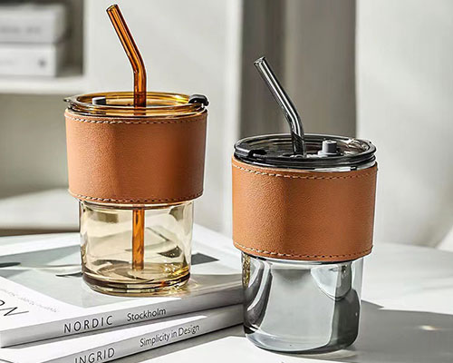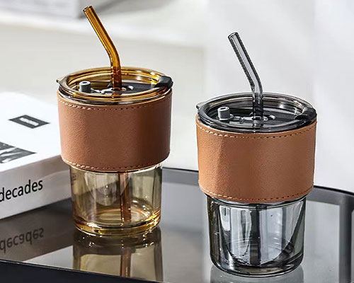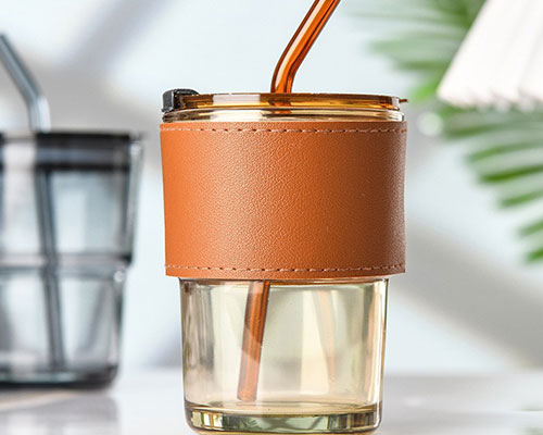We offer this glass water bottles with glass straws in amber and gray color. A protective sleeve is also provided to protect the glass cup.
