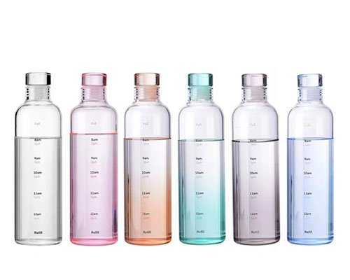 Yafu Glass is a professional glass bottle manufacturer, we offer wholesale glass water bottles with time markings in different colors and sizes. We can customize the logo or patterns on the glass bottle according to the needs of customers.