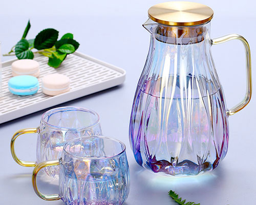 The colorful glass water pitcher with lid has a nice and simple look, and we also offer matching glasses. These glass jugs’ lids are removable and stains are easy to clean.