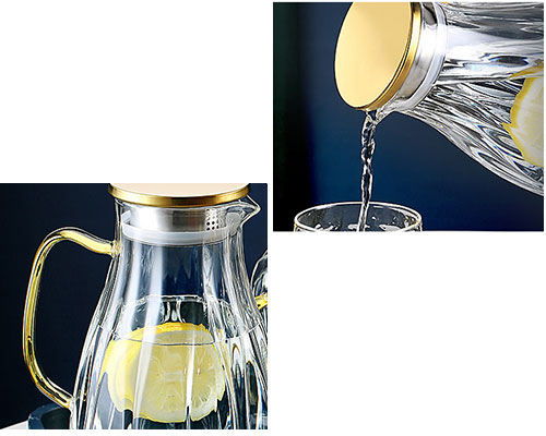 The glass water pitcher with lid is made of high borosilicate glass with good texture. It has strong mechanical strength, strong corrosion resistance to acids and alkalis, and other chemicals, and is easy to clean. The glass carafe is perfect for water, milk, tea, juice, coffee, wine, and so on.