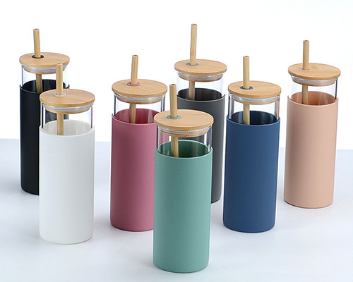The glass water tumbler with straw uses borosilicate glass, bamboo lid and bamboo straw. Silicone sleeves provide a non-slip grip for easy grip. The silicone case comes in different colors to easily identify your drink on the table.
