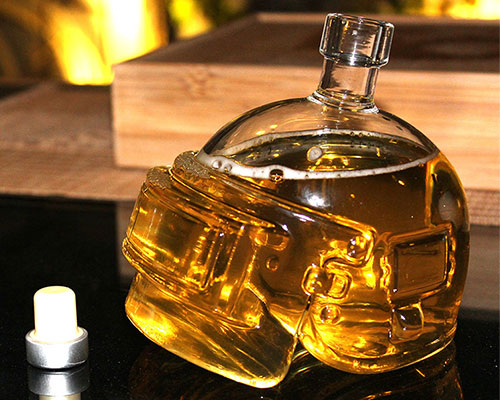 - Creative Helmet and Muscle Glass Bottle: The creative helmet and muscle design are made of high-grade clear crystal glass, which is lead-free, colorless and odorless, which is safer and more durable than ordinary glass wine bottles. It makes curves and edges sharper when empty glass bottles are filled. The excellent seal of the rubber stopper prevents alcohol evaporation and liquid leakage.