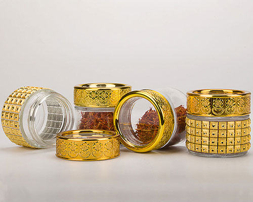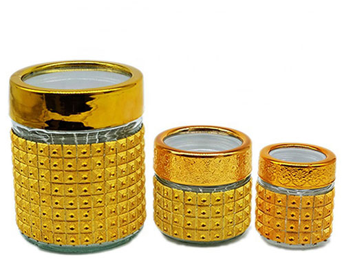 Gold glass canisters are the best choice for precious products due to their noble and luxurious look. The golden glass jar comes with a golden lid, making it ideal for branding and marketing. Gold plating is applied around the lid and the top lid is transparent making it easy to see the product. Packaging your products in an attractive and functional manner is crucial in today’s competitive marketplace.