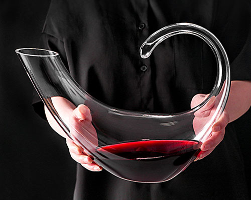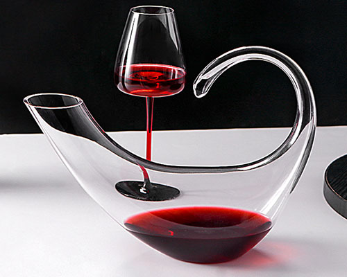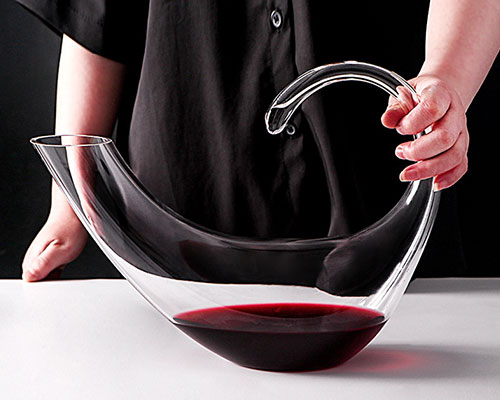 Mature old wines don’t need much oxidation. Slowly pour the wine from the glass wine decanter into a hand blown decanter. It is easy to remove the sediment in the wine, and the wine will be as fresh as new wine.