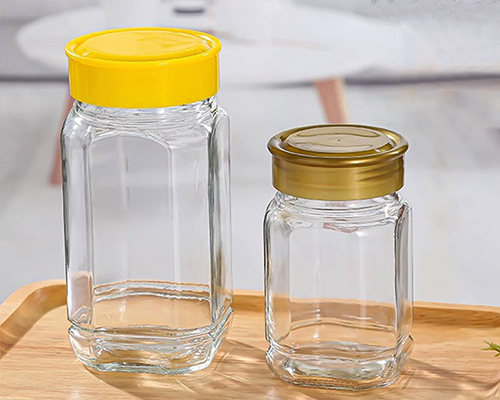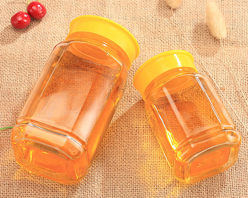 The glass honey jars with lids are octagonal in design. We have two capacities: 375ml and 730ml. They are versatile food storage jars that can be used to store pickles, jams, and canned food.