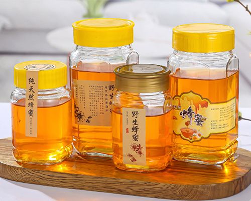 Octagonal glass honey jars with lids and labels can enhance the appearance and brand image of honey and attract more consumer attention.