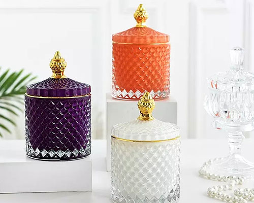 Yafu Glass is a glass bottle and glass jar manufacturer, we offer wholesale luxury glass candle jars with lids in different shapes and colors. These glass jars with lids are great for candles, because they are thick glass and keep warm well.
