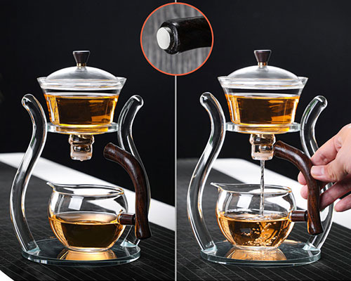The borosilicate glass teapot is an ideal tea set for kung fu tea. The semi-automatic glass teapot is elegant in shape, crystal clear, and the soup color is unobstructed. This magnetic glass pitcher can produce water in one second, and the water is like a column, and it is not hot.