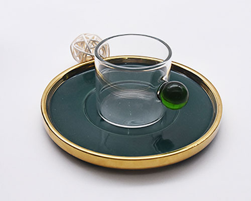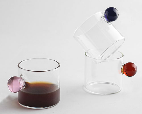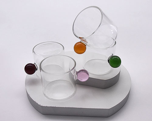 Yafu Glass is a glassware manufacturer, we offer glass coffee tea cups with ball handles in many colors: green, blue, red, pink, yellow, brown, etc.