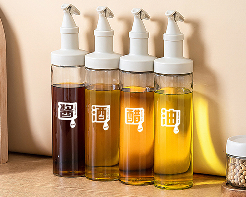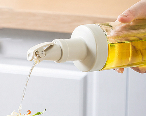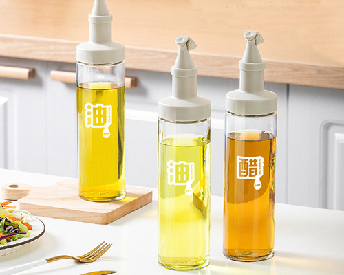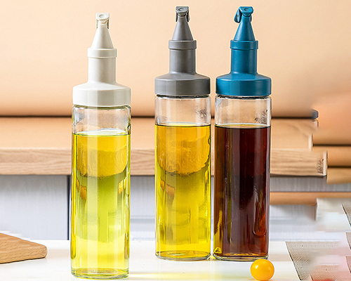 This glass olive oil dispenser bottle set comes with a unique olive oil dispenser spout to ensure accurate dispensing. We have four colors of dispensers, white, yellow, blue, and gray. The dispenser mouth adopts a trumpet design, allowing smooth oil flow without sticking to the wall.