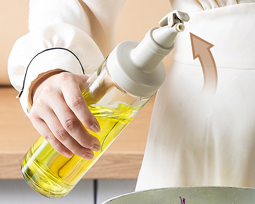 The olive oil bottle with spout is made of high-quality food-grade glass and has a capacity of 500 ml. The Olive Oil and Vinegar Dispenser Bottle is a versatile kitchen must-have. The glass bottle is corrosion-resistant and perfect for olive oil, vinegar, sauce, and syrup.