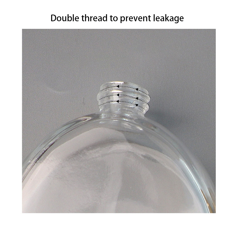 The oval perfume bottle is made of high-quality glass material, which is safe and environmentally friendly, beautiful and practical. After using the inner plug, there is no water leakage and good sealing performance.