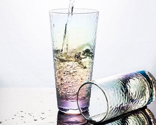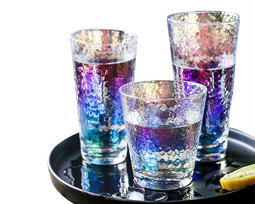 The body of the drinking glass cup is made of a colorful hammered texture. The creative rainbow hammer glass cup looks colorful and non-slip under the light. They feel great in the hand and the base is heavy and fairly sturdy. It doesn’t tarnish even after hundreds of scrubs.
