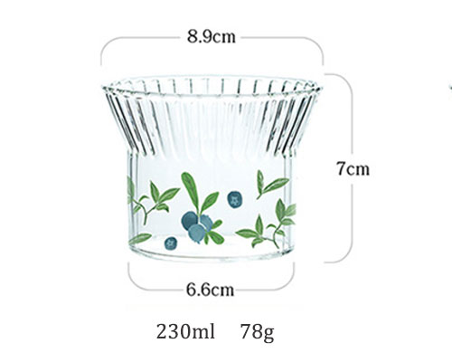The small glass dessert cups are made of borosilicate material. The outer pattern of the glass is made of roasted flowers, and the 230ml small-capacity glass has a larger mouth, which can be used to hold pudding, milk, milkshake, cheese, yogurt, etc.