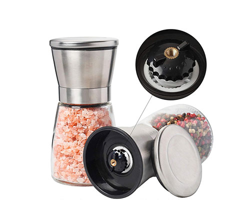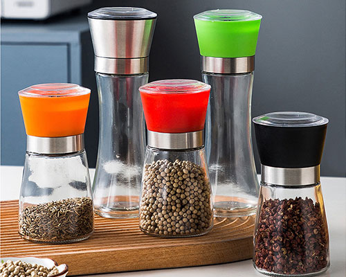 The glass pepper mill is topped with a sealed stainless steel lid, which reduces the entry of water and dust, thus keeping the spices dry.