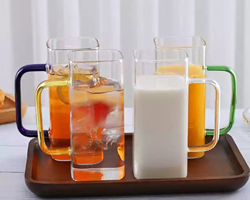 The square glass cup with handle makes it easy to hold the mug.These square glass cups are made of high borosilicate glass, which has a higher expansion coefficient than ordinary glass, and will not burst when heated by an open flame.