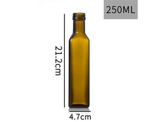 The square olive oil bottle has a 250 ml capacity and is made of high-quality glass. Glass is not easy to react chemically with olive oil. We have 250ml square glass bottles in 3 colors, clear, brown, and green.