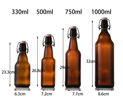 We can customize glass bottles and caps according to customers’ needs, there are large-capacity flip-top bottles for brewing is specially customized for beer lovers.
