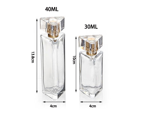 The triangular perfume bottle uses a triangular lid with the same geometry as the glass bottle body, giving it a sharp-edged look. We have two capacities of 30ml and 40ml, the portable size is very delicate and easy to carry and store.