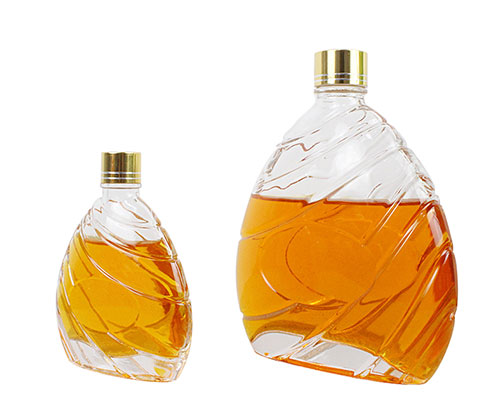 Yafu Glass is a professional glass bottles manufacturer, we offer whiskey glass bottles wholesale in different sizes. This clear glass wine bottle has a flat shape with gracefully curved sides, rounded and comfortable to the touch.