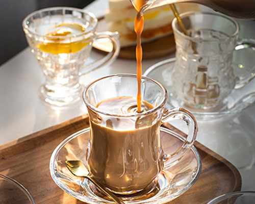 The hot sale transparent glass iced coffee cups can observe the color of the coffee liquid through the light, as well as the transparency of the liquid. For example, dark roasted black coffee appears black in a ceramic cup, but wine red appears in a glass cup through light. A light roasted black coffee appears dark brown in a ceramic mug and orange-red in a glass through light.