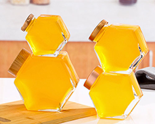 Yafu Glass is a professional glass bottle manufacturer, we have various styles of hexagonal glass jars. Our glass jars are high quality and durable. We also offer lids in various materials, tinplate lids, aluminum lids, wooden lids and plastic lids to ensure honey stays fresh and protected.