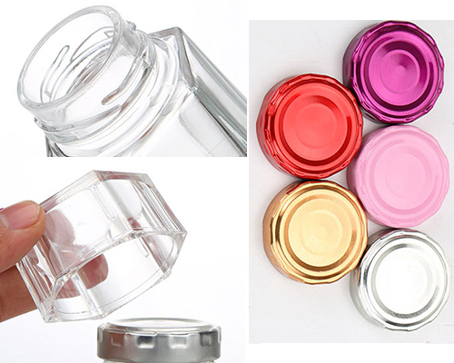 In addition to being beautiful, the hexagonal design also makes the glass bottles more stable when placed. Moreover, compared with round bottles, hexagonal glass jars with lids can be stacked more tightly and save space.